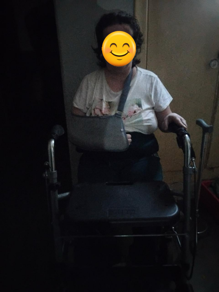 Wir haben einen Rollator für eine verletzte Frau ausgegeben.