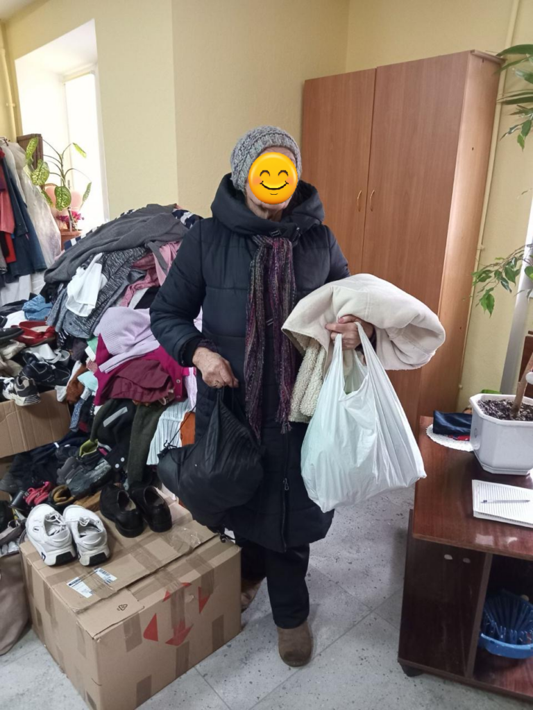 Diese ältere Frau hat dringend benötigte Bekleidung von uns erhalten.