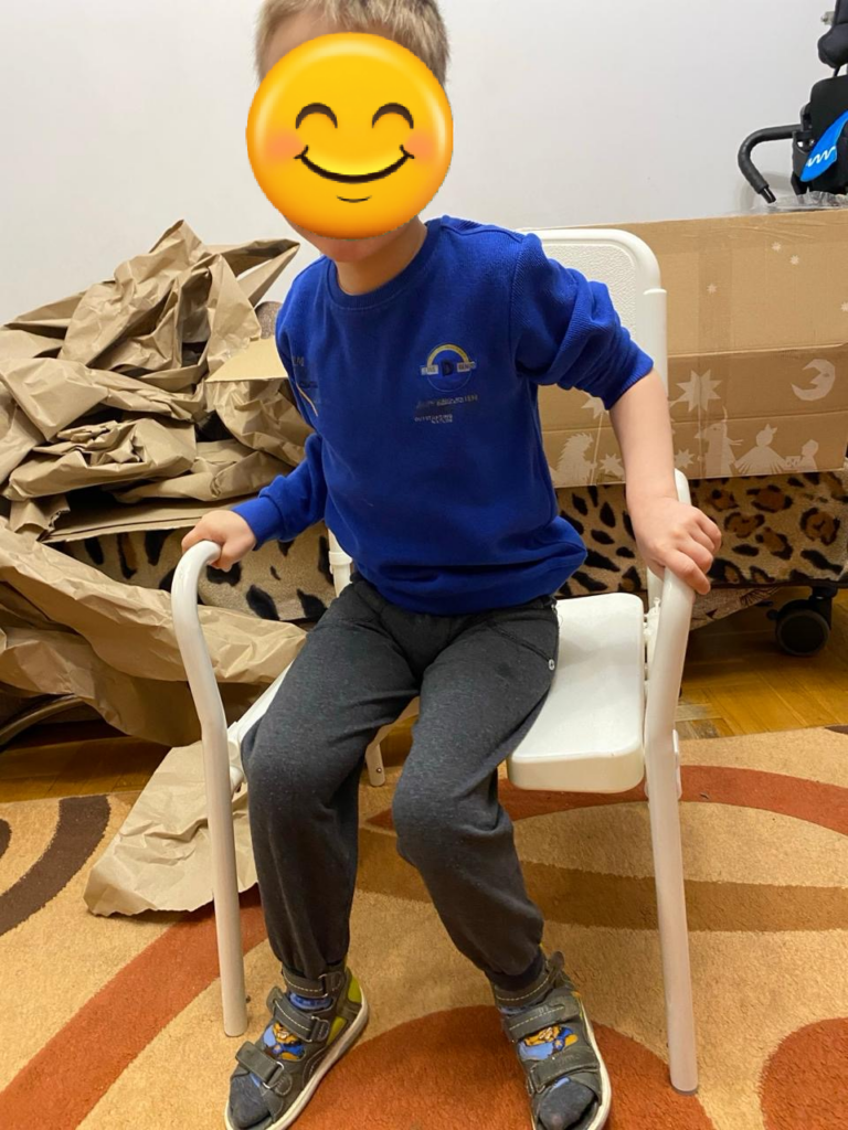 Ein Junge aus Luzk mit Zerebralparese hat einen Duschstuhl von uns bekommen.