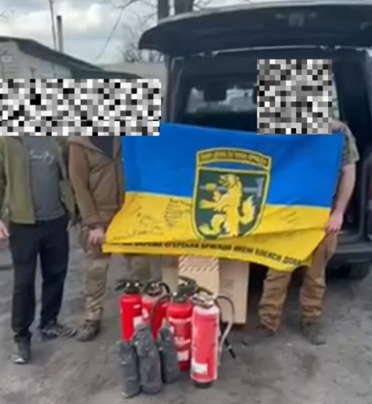 Die Jungs der 68. Jägerbrigade der ukrainischen Streitkräfte sind dankbar für die dringend benötigten Feuerlöscher.