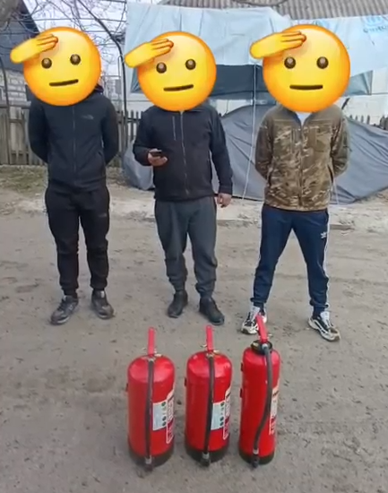 Die Jungs haben weitere dringend benötigte Feuerlöscher von uns erhalten.