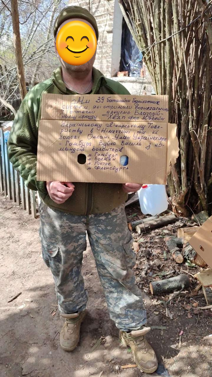 Die Jungs des 39. Drohnenbataillon bedanken sich für die gelieferten Feuerlöscher.