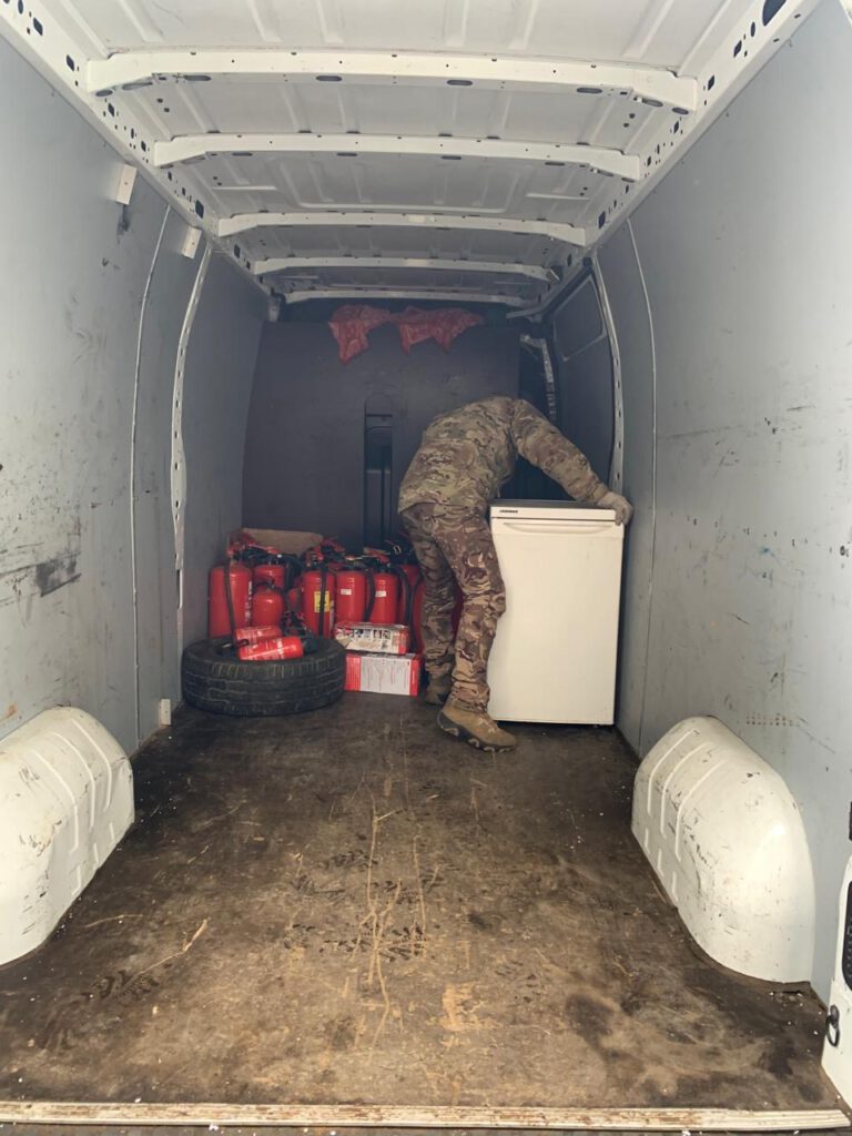 Wir haben Feuerlöscher und einen Kühlschrank an die Azow-Brigade geliefert.