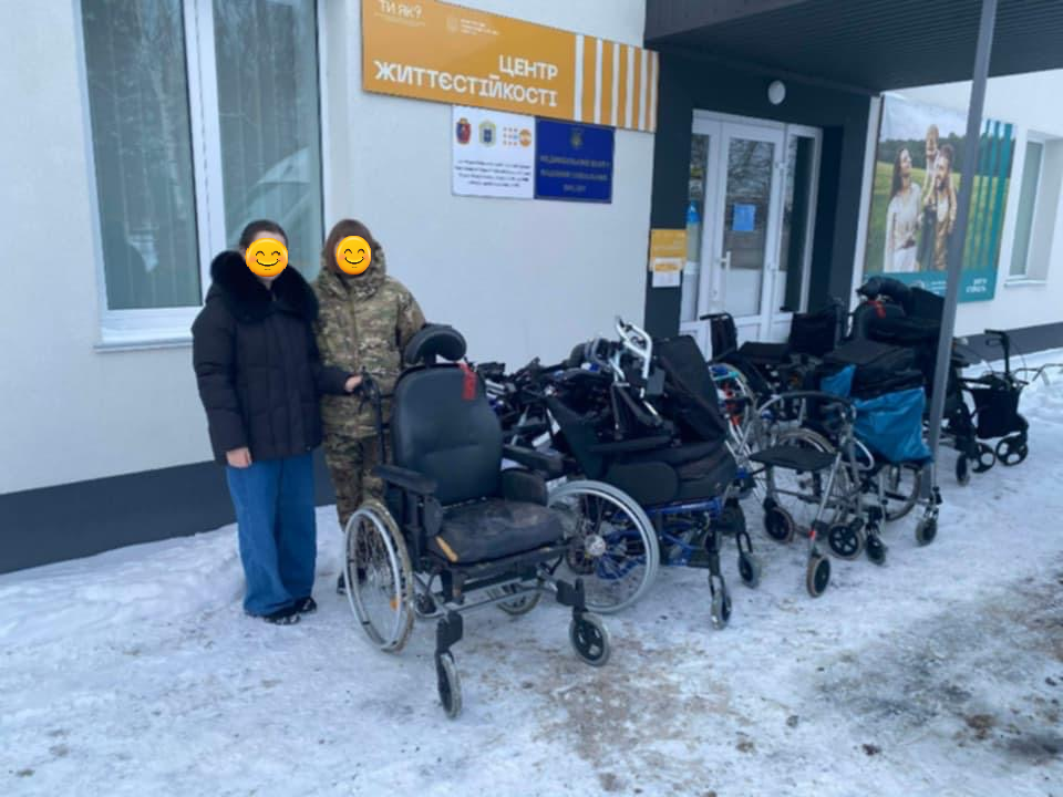 Wir haben dringend benötigte Rollstühle und Rollatoren an ein Resilience Zentrum geliefert.
