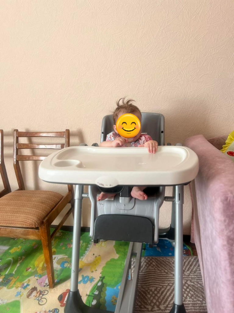 Dieses Kleinkind hat einen Kinderstuhl bekommen. Damit ist das Füttern für die Eltern deutlich einfacher geworden.