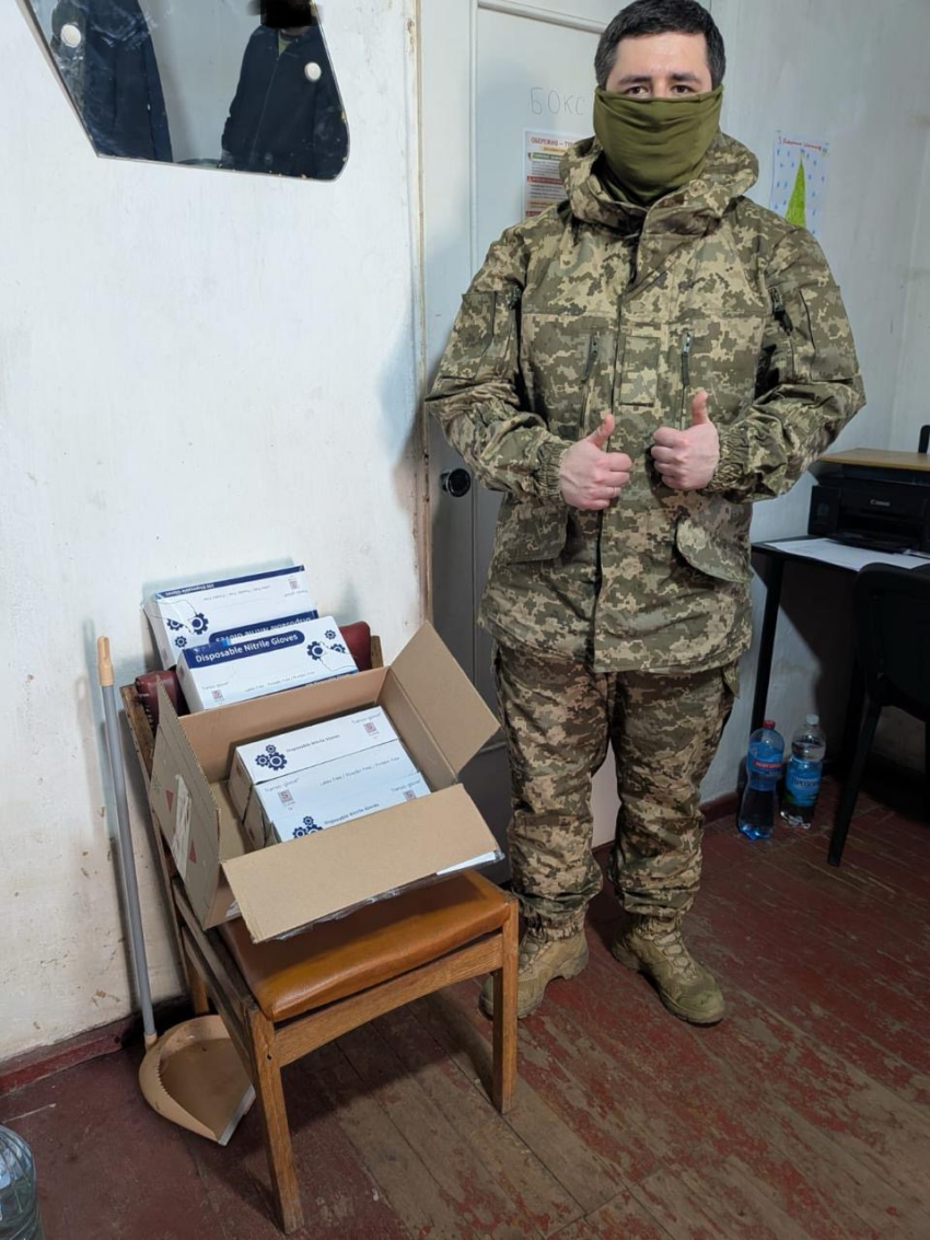 Wir haben dingend benötigte medizinische Handschuhe an die 37. Brigade geliefert.