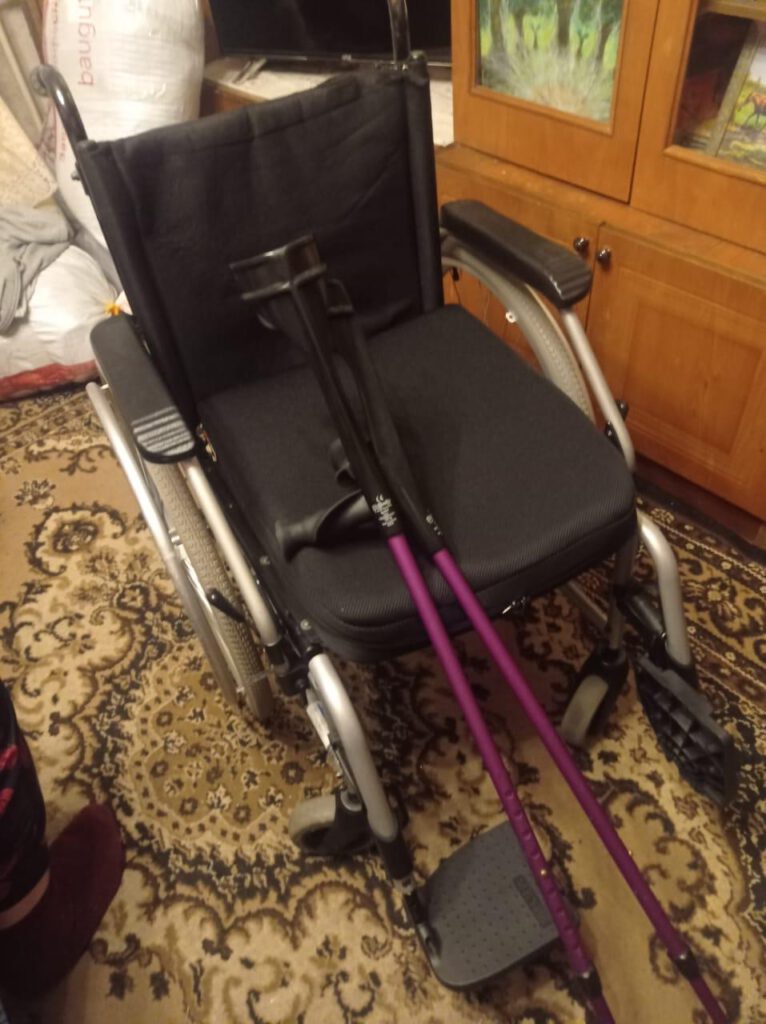 Wir haben einen Rollstuhl und Krücken an eine Dame in Kyiv geliefert.