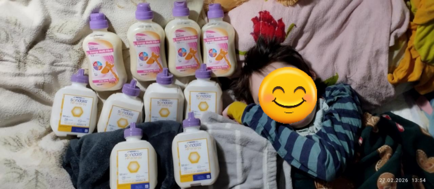 Ein weiteres Kind hat von uns dringend benötigte Sondennahrung geliefert bekommen.