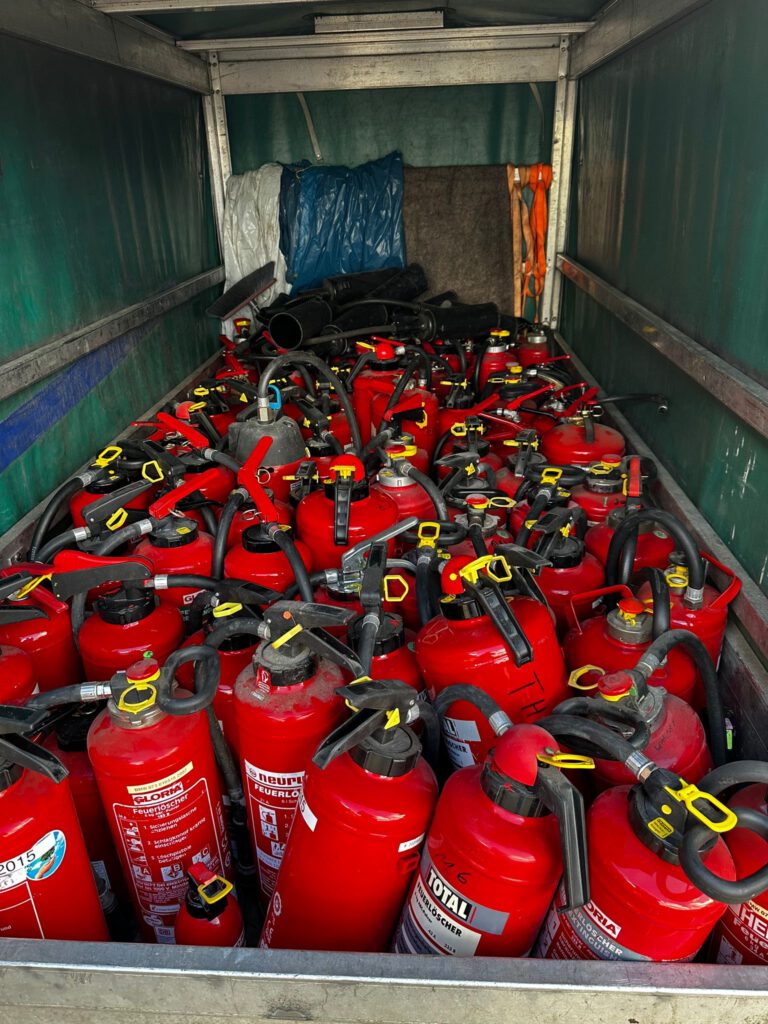 Wir haben zwei volle Anhänger mit Feuerlöschern und viele weiteren Spenden abgeholt. Vielen Dank an die Spender dieser wichtigen Sachen.