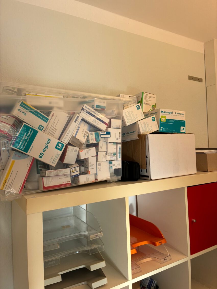 Wir haben viele Medikamente und Kartons für die parenterale Ernährung gespendet bekommen. Vielen Dank an unsere Freunde vom Verein Netzwerk Palliative Care im Kreis Herzogtum Lauenburg e.V. für die erneute Unterstützung mit wichtigen medizinischen Produkten.